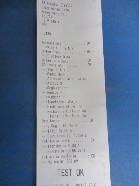 Descriere: VALEO TG14C043, cu ambreiaj, 140A,14V, imprimare de la tester din poza (2EKE2,2.5TDi,10V,100kW,136KM,ABS,climatronic,autobuz,cod motor BJL,cod vopsea R902 -Calitate A2&& CRAFTER TDi ALTERNATOR 03L903023L 140A TEST