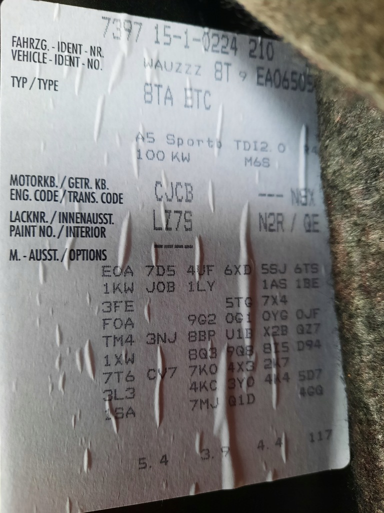 PARTE A ORIGINEI LEGALE PENTRU CODARE OFERIM NR. VIN: WAUZZZ8T9EA06505