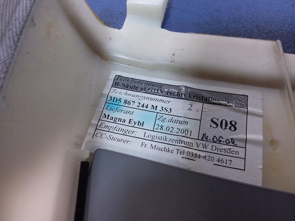Descriere: gri, elemente de fixare intacte, urme vizibile de folosire, calitate B && VW PHAETON CAPAC B-PILON DREAPTA SUS 3D5867244M