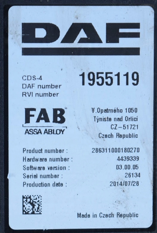 Controler FAB CDS-4 pentru DAF XF 106 EURO 6.