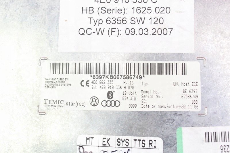 Informații suplimentare: MODUL BLUETOOTH. D3 3.7 V8 SEDAN QUATTRO -Calitate A && CONTROLLER AUDI A8 4E0862335