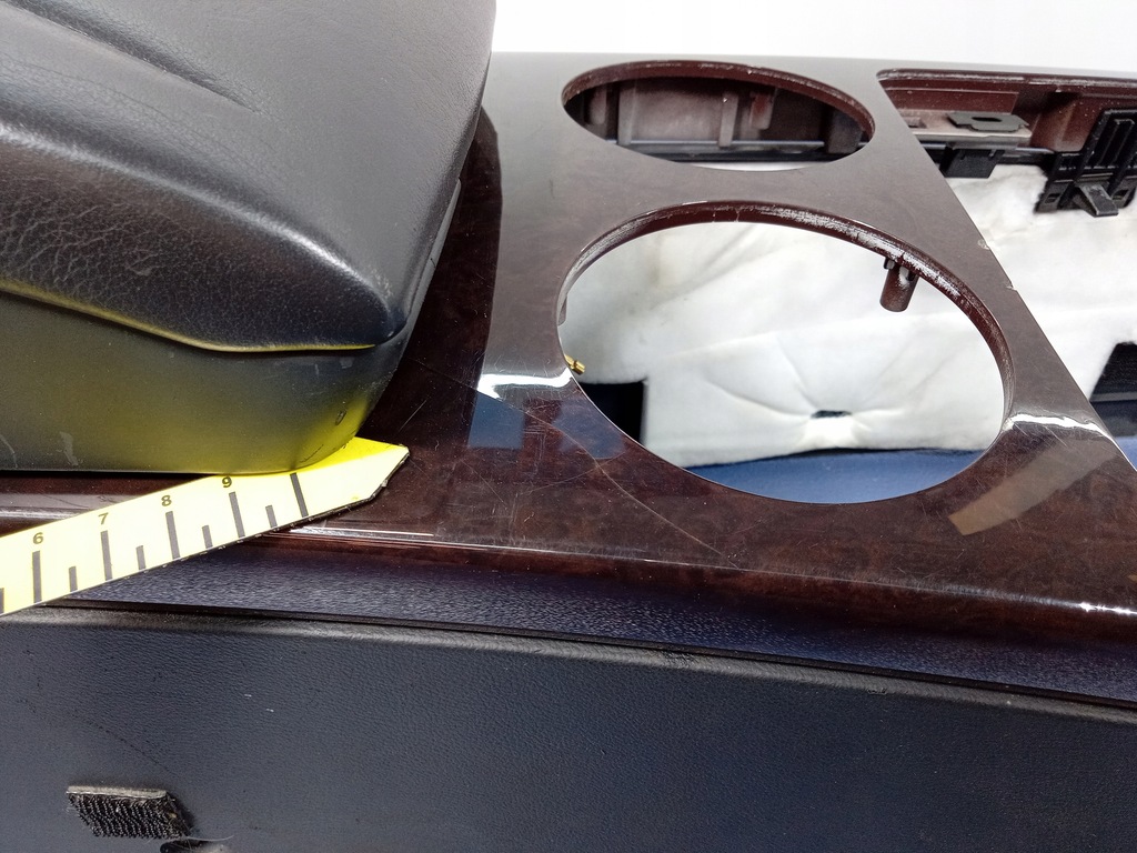 Descriere: versiune cu o singură cotieră, orificii de ventilație spate, prize 12V, spațiu pentru panoul de aer condiționat din spate, cotieră din piele neagră, lemn de mirt închis la culoare, semne vizibile de utilizare, zgârieturi, fisuri de decor, fără suport de pahare, - calitate B && VW PHAETON TUNEL COTIERA CENTRALĂ