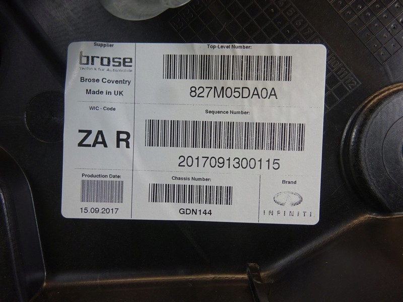 PIESA: REGULATOR GEAM DREAPTA SPATE MARCA: INFINITIMODEL: Q30MODEL: CAPACITATE MOTOR: 2.0AN: 2018CORPS: Suv NUMĂR MADE: COD MOTOR: PUTEREA MOTOR: 211 COD VOPSEA: Z11G