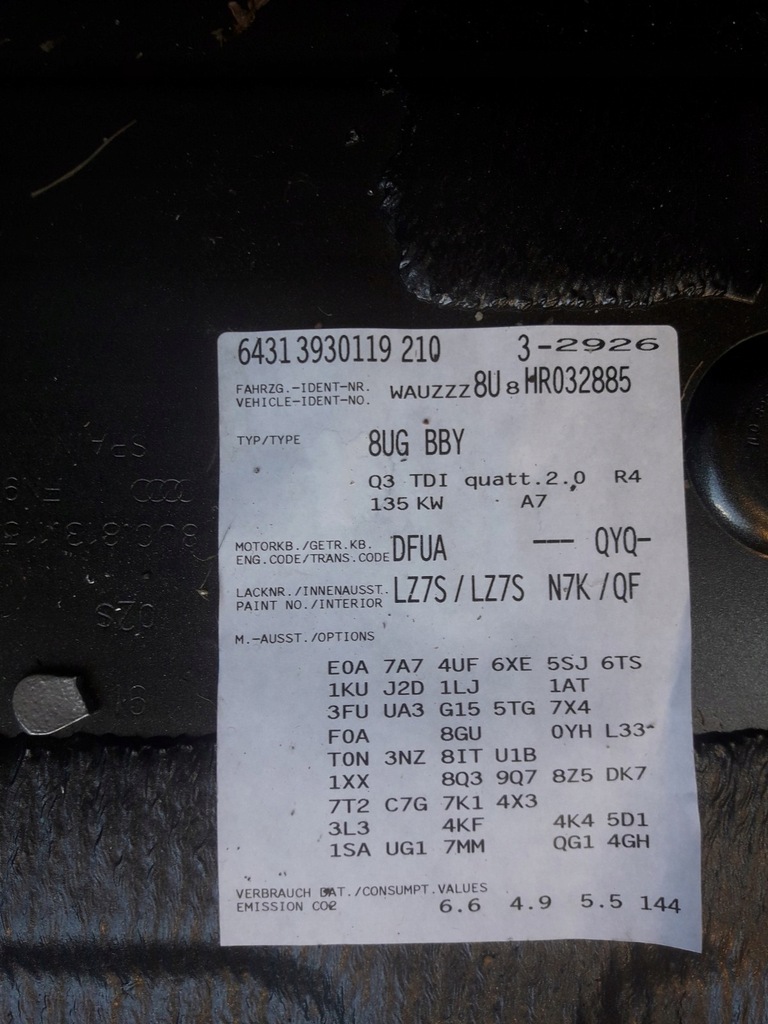 PARTE A ORIGINEI LEGALE PENTRU CODARE OFERIM NR. VIN: WAUZZZ8U8HR032885