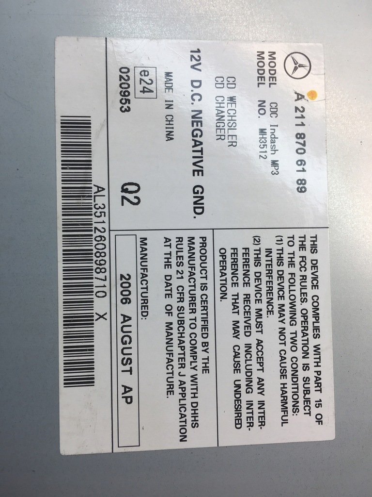 | Număr original de catalog | A2118706189 |