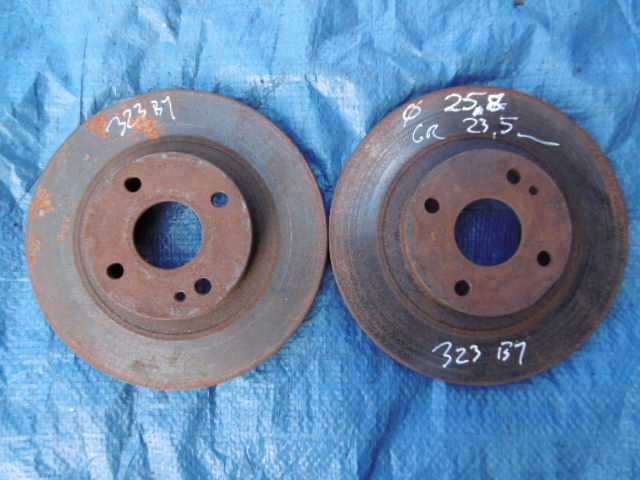 Subiectul ofertei sunt discuri de frana fata cu diametrul de 258mm si grosimea de 23.5mm (cele noi sunt 24mm), Mazda 323 BJ, vizibile in poza